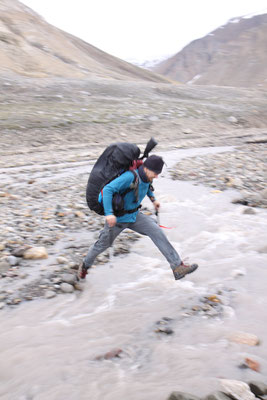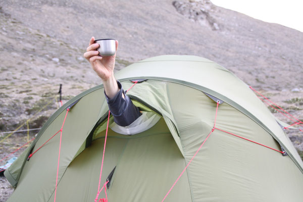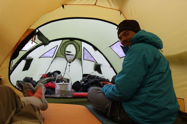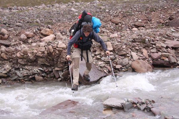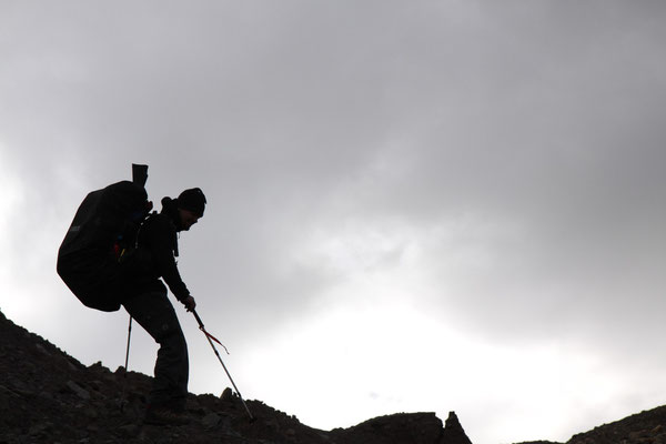 The subsequent day everything was stuffed into the backpacks, things that did not fit in anymore were fixed on the outside. With 32kg, the bags were at the limit of what we could carry without major problems. Our strategy was to hike for an hour, then to make a long recovering break to hike for another hour. It worked very well, although the sections got longer and longer at the end of the trip as provision in the backpacks got less and less. Back home we practised by strolling the parks of Stuttgart with 30kg on our backs for one hour- which irritated several passerbys, some were curious and most of those were right in concluding that we trained for a trip.