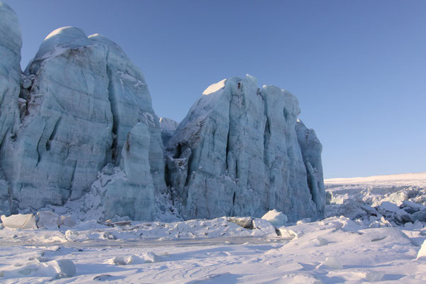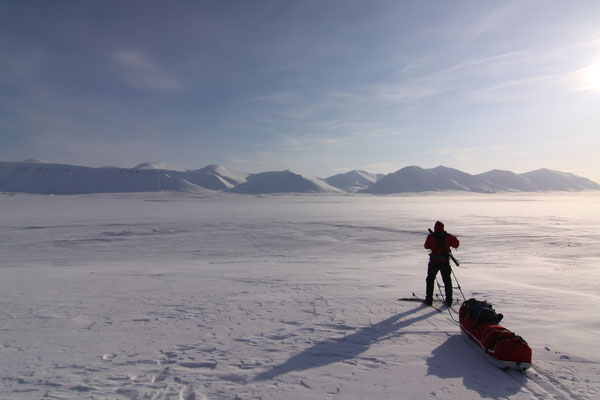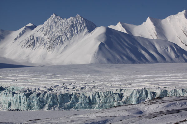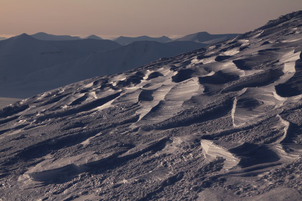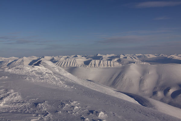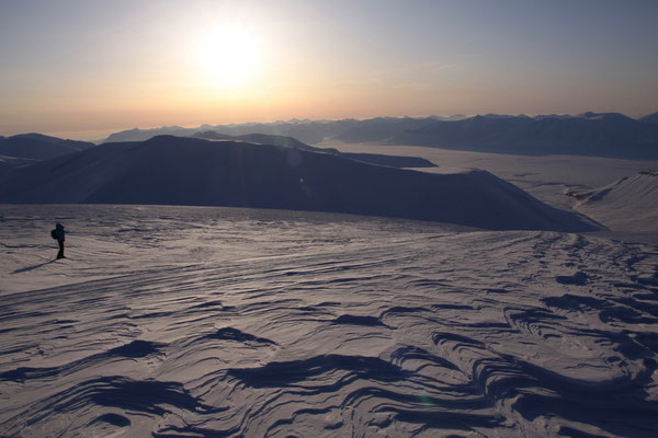 +++ 200km round trip out of Longyearbyen +++ ascent of Gustavfjellet (1216m) +++ Camp Morton +++ facing Fridtjofbreen +++ Barentsburg +++ midnight tour to Nordenskiöldfjellet +++ Pyramiden by snow mobile +++